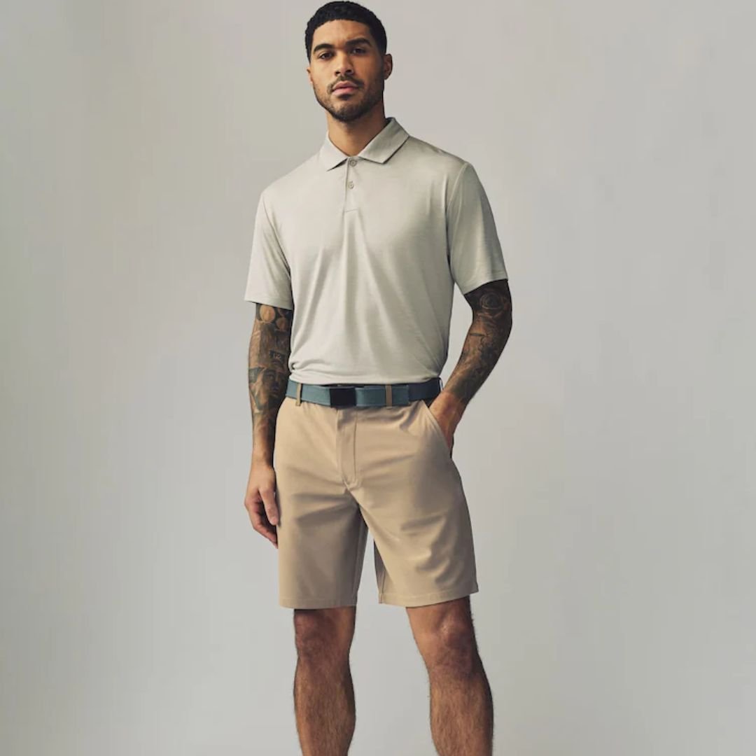 • Wholesale & OEM-ready active golf shorts in neutral stone